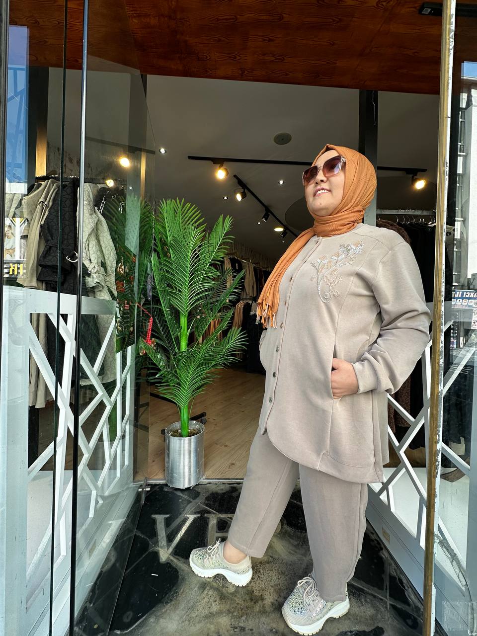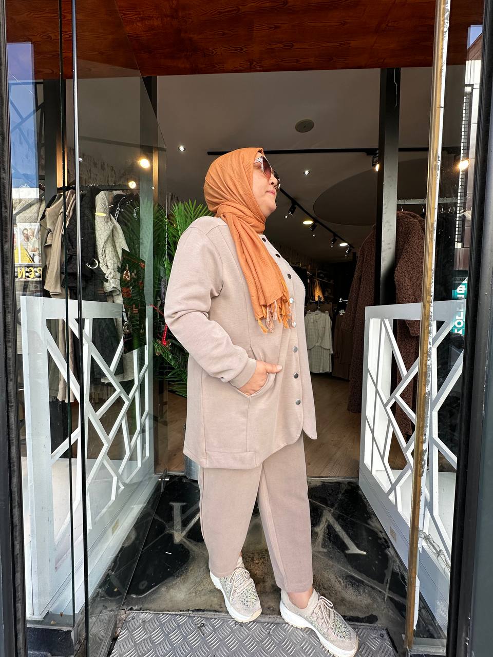 ÇİÇEK NAKIŞLI DÜĞME DETAYLI TAKIM- BEJ
