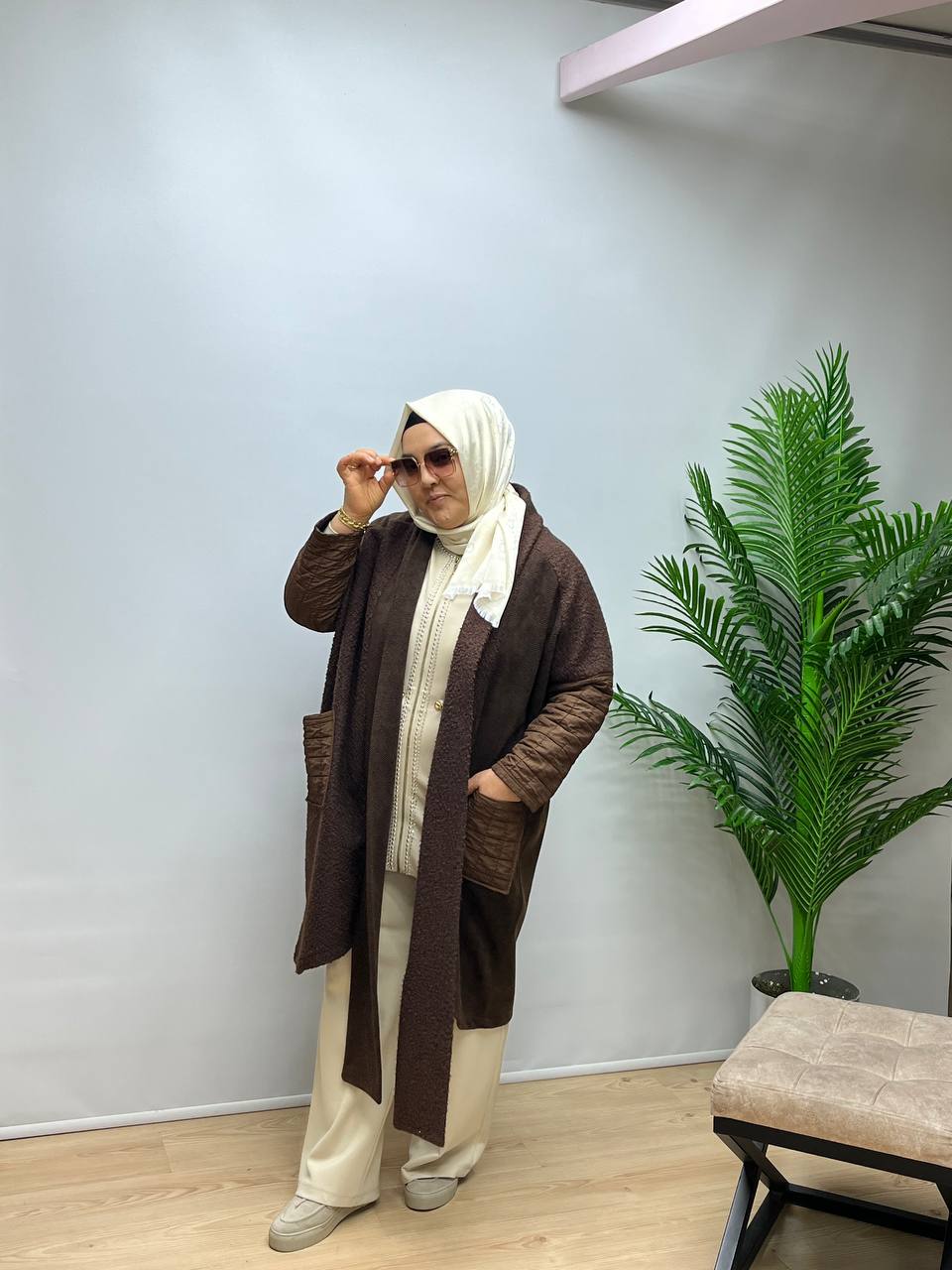 Yumuşak dokulu kuzu kumaştan üretilmiş, kapitone detaylı kap modelimiz standart beden olup 38–52 beden arası uyumludur.