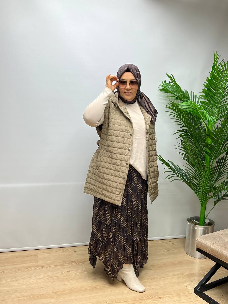 Kombinlerin adresi Vera Moda, bu kez şıklığı detaylarda saklı özel bir kombinle karşınızda. Zarif dokusuyla öne çıkan deri süet çanta, kombinlere sofistike bir hava katarken hem günlük hem de özel kullanım için ideal bir tamamlayıcıdır. Haki renk kapitone yelek, içi astarsız yapısıyla mevsim geçişlerinde konforlu bir kullanım sunar; kapşon detayı, arka bel kısmındaki ip kemer ve çıtçıtlı kapama tasarımıyla modern bir duruş sergiler. Soğuk iplik triko ile kombinlenerek hem rahat hem de stil sahibi bir görünüm elde edebilirsiniz. Sayfamızda yer alan asimetrik kesim kırıştırma etek ile tamamlanan bu kombin, şehir şıklığını zahmetsizce yansıtmak isteyenler için ideal bir tercihtir.